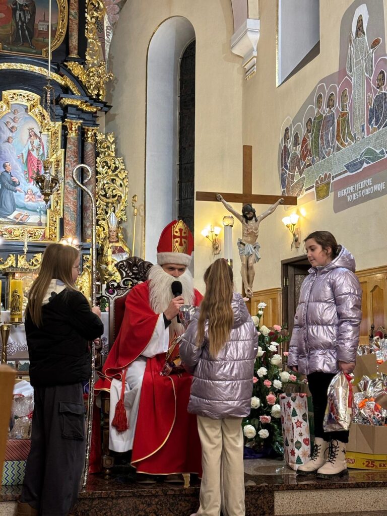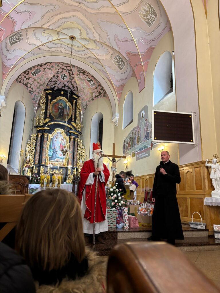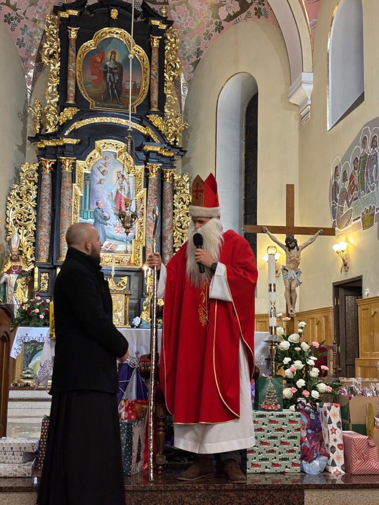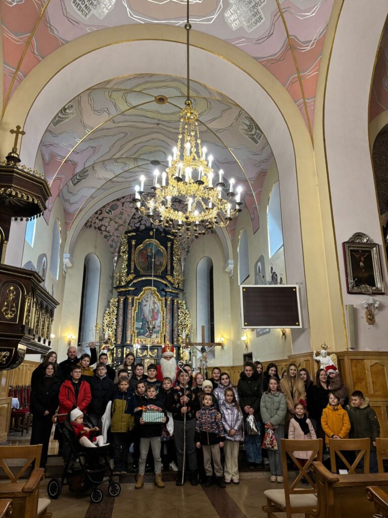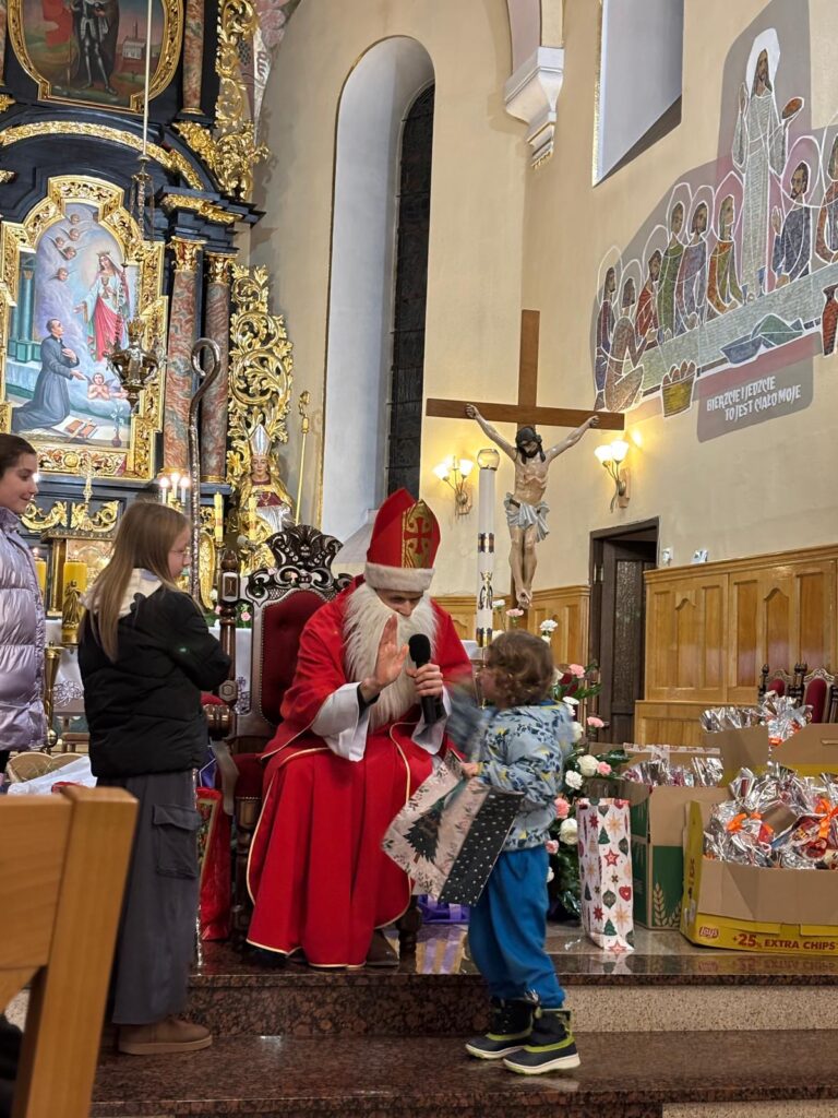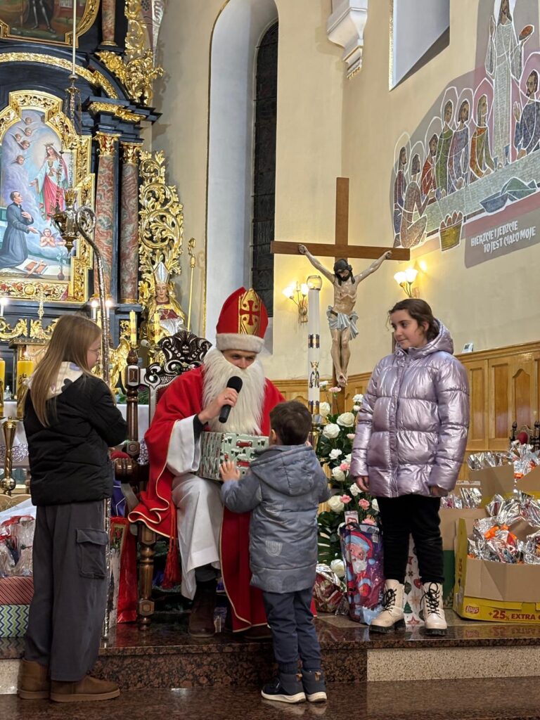 Święty Mikołaj na szczęście jak co roku postanowił przybyć także do naszej parafii. Spotkanie ze świętym Mikołajem odbyło się w sobotę 6 grudnia po wieczornej Mszy Świętej. Atmosfera była pełna uśmiechu, ciepła i szczerej dziecięcej radości – a wszystko to w duchu dobroci, którą św. Mikołaj niezmiennie nam przypomina.