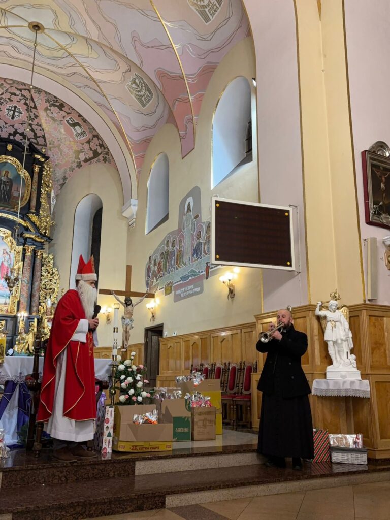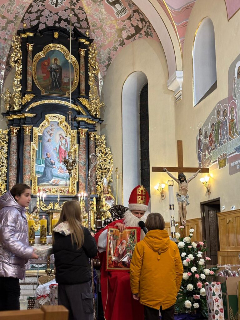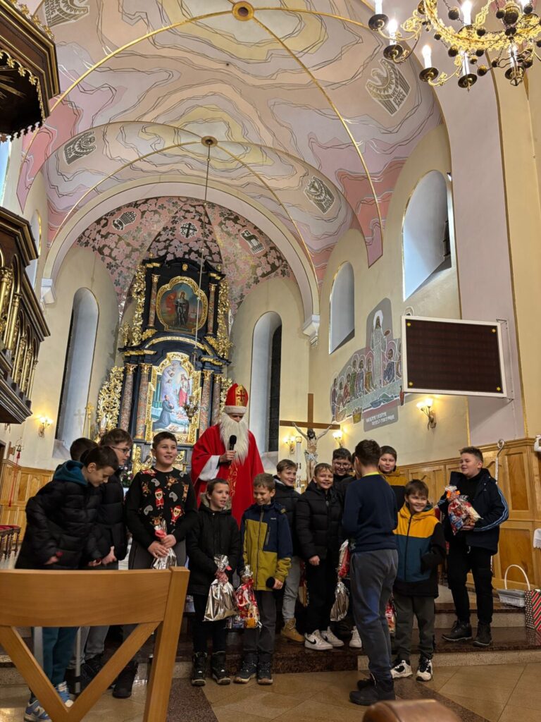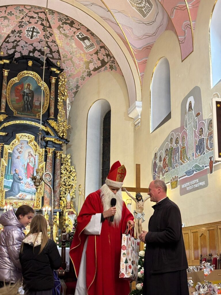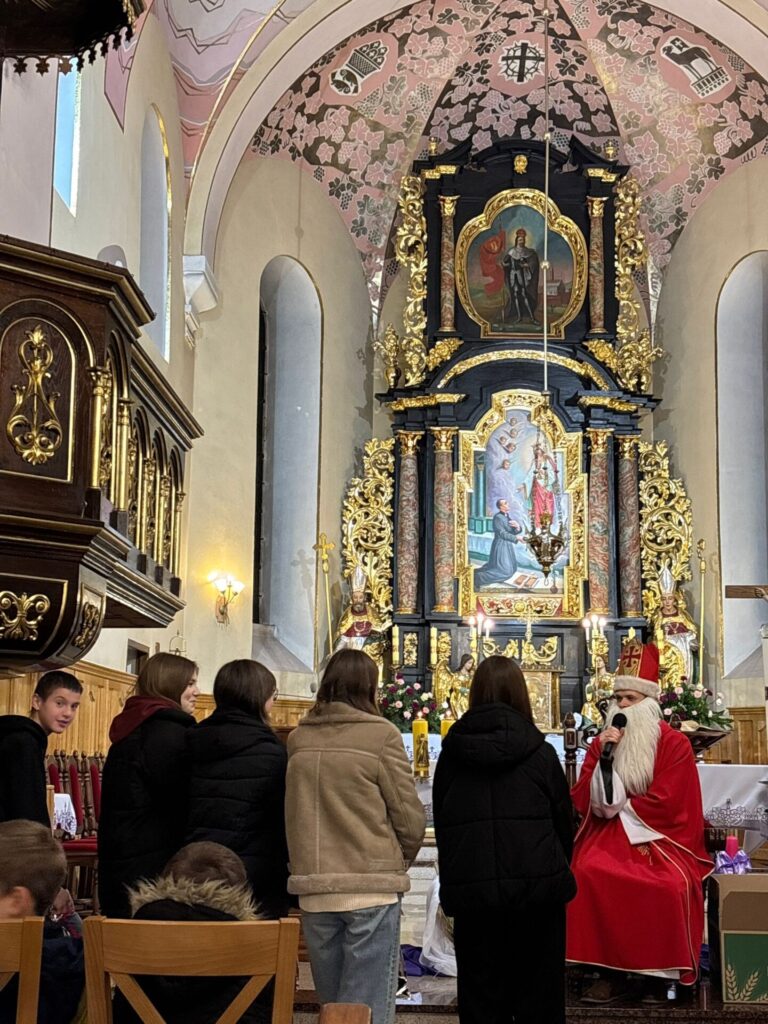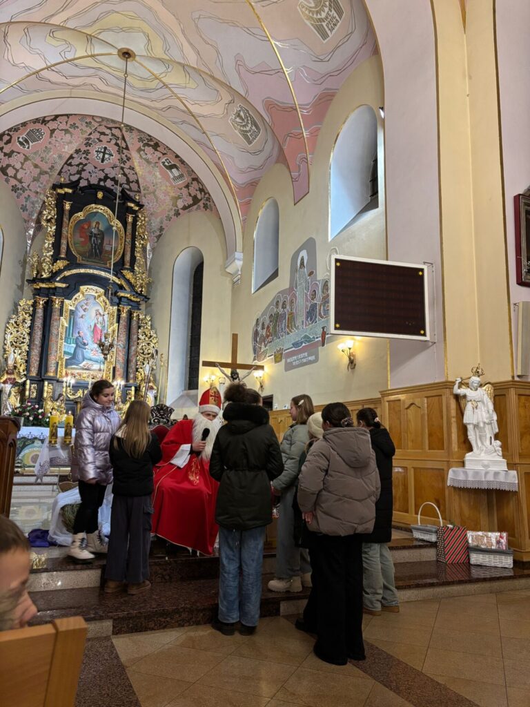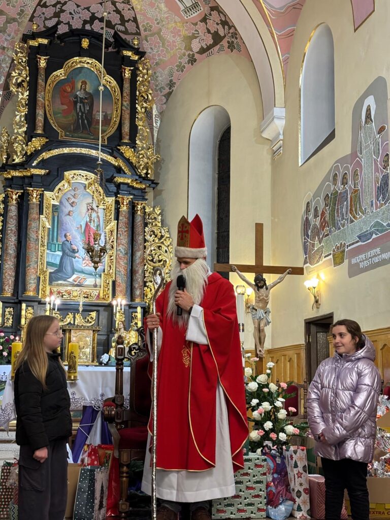 Święty Mikołaj na szczęście jak co roku postanowił przybyć także do naszej parafii. Spotkanie ze świętym Mikołajem odbyło się w sobotę 6 grudnia po wieczornej Mszy Świętej. Atmosfera była pełna uśmiechu, ciepła i szczerej dziecięcej radości – a wszystko to w duchu dobroci, którą św. Mikołaj niezmiennie nam przypomina.